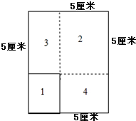如图所示,图“1”为题干中提到的小正方形,作辅助线后发现:图2为边长5厘米的正方形,其面积为25平方厘米;图3、4为长是5厘米的大小相等的长方形,有大小正方形的面积相差55平方厘米,即可求出图3、4的宽,即小正方形的边长.从而可求出其面积.