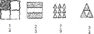 点评:分数的意义为:把单位“1”平均分成若干份,表示这样一份或几份的数为分数.