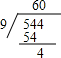 544÷9=60…4