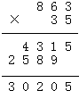 解答:解:863×35=30205,