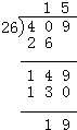 409÷26=15…19,