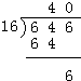 646÷16=40…6.