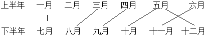 照样子把上半年和下半年中天数相同的月份连一连.