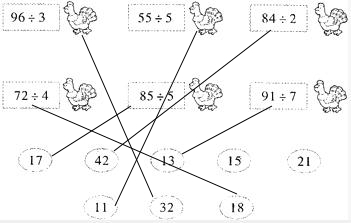 依据整数除法计算方法,分别求出题干中各算式的商,再与题干中的数相连即可解答.
