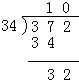 372÷34=10…32;