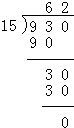 930÷15=62;