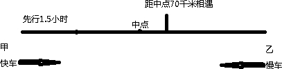 分析:“两车在距离中点70千米处相遇”说明“快车比慢车多行了140千米”,由于快车先行1.5小时,同时行驶的过程中,快车比慢车实际多行了140-60×1.5=50千米,由此可以求得两车同行的时间,从而解决问题.