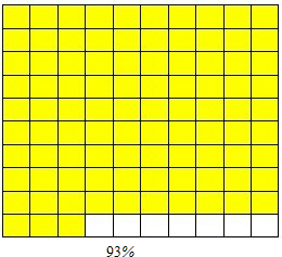 在图中涂上阴影或斜线,把93%表示.