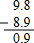 9.8-8.9=