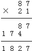 | 3.7+6.05= | 8.25-4.9= | 2.6+12.75= | 36×45= | 78×22= | 87×21= |