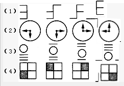 分析:(1)图形的每个横线从上到下依次变为向右;