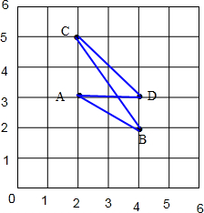 在一张方格平面图上有四个点,分别为A(2,3),B(4,2)、C(2,5),D(4,3),顺次连结A、B、C、D,所得图形一定为正方形.