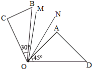 将分别含有30°和45°角的一副三角板如图放置,且30°和45°角的顶点重合在一起,OM平分∠AOC,ON平分∠DOC,画出几何图形,并求∠MON的大小.