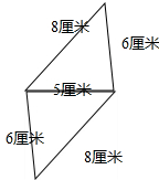 用两个完全相同的三角形,拼成一个平行四边形.三角形的边长分别为6厘米、5厘米、8厘米,这个平行四边形的周长最大是