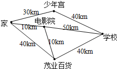 (3)从家到学校有几条路可以走?哪条路线最短?