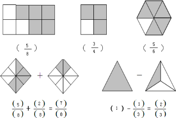 (3)将六边形看作单位“1”,把它平均分成6份,其中阴影占其中的5份,用分数表示是