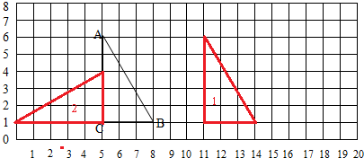 (2)把三角形ABC的三个顶点分别向右平移6格,再把它们依次连接起来即可得到平移后的三角形1;