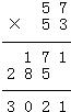 57×53=3021