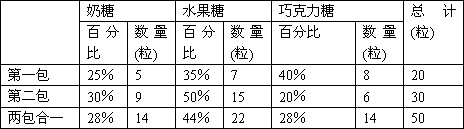有两包糖果,每包中都有奶糖、水果糖和巧克力糖.