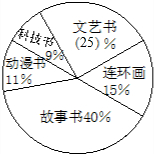 动漫书:400×11%=44(本).