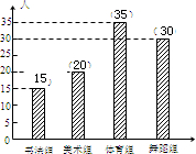故答案为:15;20;30;35;体育;书法;100;25;50%.