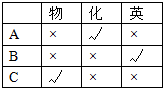 故答案为:A老师教化学,B老师教英语,C老师教物理.