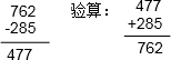 762-285=477;