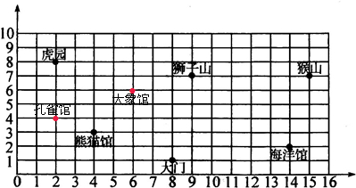 解:(1)虎园(2,8),熊猫馆(4,3),大门(8,1),