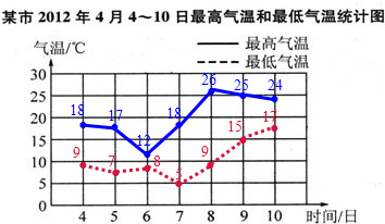 下面是某市2012年4月份4~10日每天最高气温和最低气温的记录.