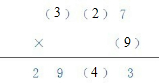 B×9+6=20+D,整理得:D=B×9-14,又因为D必须是一位数,所以,B=2,D=4;综合以上分析可得:327×9=2943.