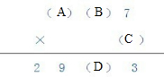 因为积的个位数字是3,所以C=9;又因为百位数字A×C的积要得到大于20,小于30,所以A=3,这样积的百位上的9,就有下一位进了9-7=2;所以: