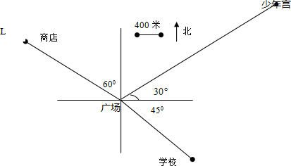 (3)先依据图上1厘米表示实际距离400米,求出少年宫与广场的图上距离,再据它们的方向关系,即可标出少年宫的位置.