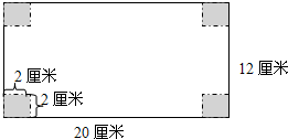 现有一张长为20厘米,宽12厘米的硬纸片,在四个角各剪去一个边长为2厘米的正方形,再折成一个长方体无盖纸盒,这个纸盒的容积是______厘米.