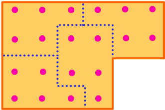 如图,把一块地分给4个小组种植,形状大小要相同(每一块有相同的点数),怎么分?