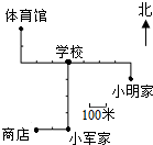 (3)小军家在商店东面200米处,也可以说在学校______面______米,用“☆”标出小军家的位置.