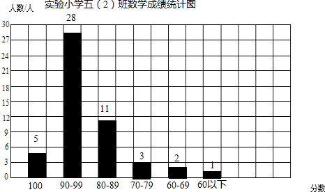 解答:解:(1)实验小学五(2)班数学成绩统计表