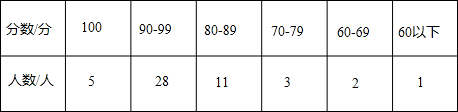 | 分数/分 | 100 | 90~99 | 60~69 | 60分以下 | ||