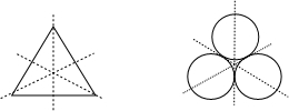 分析:根据轴对称图形的特征,正三角形由三条对称轴,也就是三边上的高所在的直线;三个等圆两两相切,有三条对称轴,就是每个圆的圆心与另外两圆的切点所在的直线.