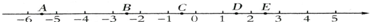 表示-0.5的点是( ),表示+1.5的点是( ),表示-5.5的点是( ),B点表示的数是( ),E点表示的数是 ( )。