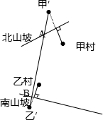 根据两点之间,直线段最短,这就是一种极端情况;如图,用“对称”方法找出甲'和乙',连接甲'乙'后交北山坡于A,交南山坡于B.据此解答.