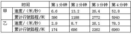 解答:解:由上表看出,乙在出发后(3分)多钟追上甲.从3分钟后开始计算,乙追上甲还需