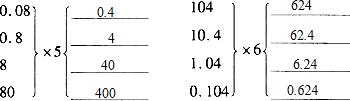 故答案为:0.4,4,40,400;624,62.4,6.24,0.624.