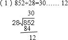 852÷28=