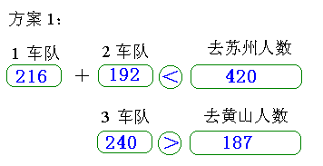 1、3车队去苏州,2车队去黄山算一算,比一比,小巧的方案行吗?