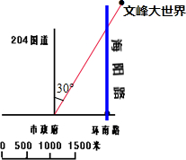 分析:(1)文峰大世界位于市政府右(东)上(北)方,所以文峰大世界位于市政府北偏东30度方向,然后根据线段比例尺和实际距离即可求出图上距离,列式为:2000÷500=4(厘米),据此画图即可;