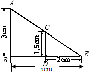 分析:如下图,△ABE与△CDE相似,所以CD与AB的比值和ED与BE的比值相等,由此列出比例,即可求出x的值.