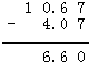 (2)10.67-4.07=