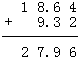 (3)18.64+9.32=