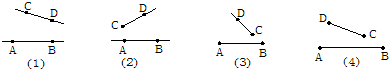 下列四个图中的线段(或直线、射线)能相交的是( )