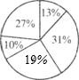 把整个圆的面积看作单位“1”,图中应填的百分比为:1-13%-31%-27%-10%=19%;由此填写即可.